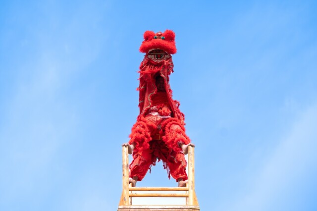 从此,他开始了白天理发、晚上舞狮的双重生活。扎马步、倒立、跳桌,赤脚在倒扣的桌腿上练习站立与移动。从一张桌子到三张桌子,再到五张、十二张。训练从地面开始,经过上千次的练习,才能上高空,“脚板心全是茧子”。半路出家的他,付出了超乎常人的努力。