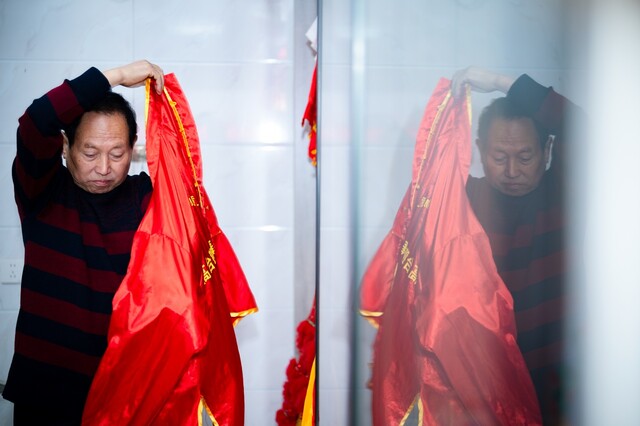 周生虎65岁时还在攀登十二张桌子的高台。“不怕是假的,但上了台就忘了怕。”如今,年事已高的他不再参与高空表演,却每次都准时出现在训练房,手把手教年轻人练基本功,并参与地面表演。
