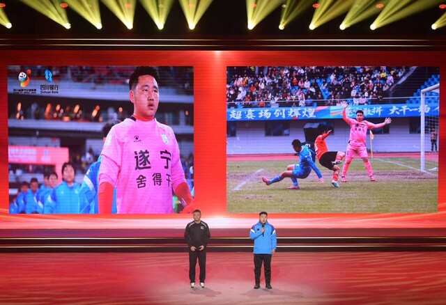2025年“川超”的揭幕战,遂宁队门将、成都上东学校体育老师刘宇航被网友戏称是“全场最忙的人”。“我在门线上挡下23次射门,最后累得腿都快抽筋了。虽然比分不理想,但当终场哨声响起,我心里其实是骄傲的。因为我们拼到了最后一刻,也感受到了来自看台和城市的掌声。”刘宇航在现场作为代表发言时说道,“‘川超’让我第一次如此真切地体会到,足球不只是胜负,更是一种全民参与。我们是业余球员,但我们穿着城市的队服,咱们四川人骨子里那股‘不服输、雄起’的劲儿,是专业的。这股劲儿不断鼓舞我们为家乡而战。这也是‘川超’最迷人、最有文化的地方。对我来说,‘川超’不仅是一项比赛,更是一次被看见、被认可的机会。能成为这件四川文化大事的一部分,我非常荣幸。”