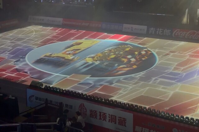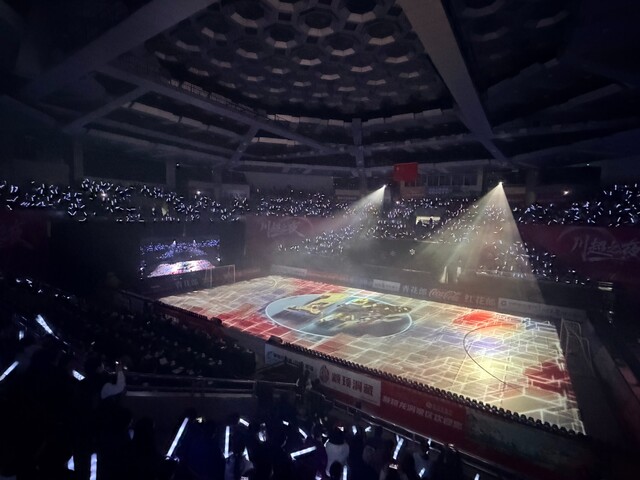 为何选择以地面为舞台视觉中心?四川卫视导演顾诗尧给出答案:“体育馆结构特殊,若设置大型屏幕,难免遮挡看台视线。因此我们依托地面裸眼3D投影,既确保看台观众能清晰捕捉每一处画面细节,又保留了强烈的现场氛围感。”