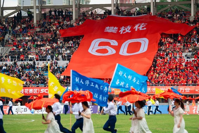 攀枝花更将足球的拼搏精神与城市精神谱系深度链接。大型歌舞剧《花开甲子》再现城市六十载奋斗历程;《咱们工人有力量》的激昂旋律在赛场回荡,唤起“三线建设”的集体记忆。绿茵场上普通劳动者球员的团结协作、永不放弃,与非遗匠人的一生坚守、精益求精,实现了精神层面的同频共振——那是对事业的赤诚,是代代相传的信念。