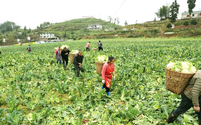 工人在高县田间采收花菜。(陈小芳 摄)