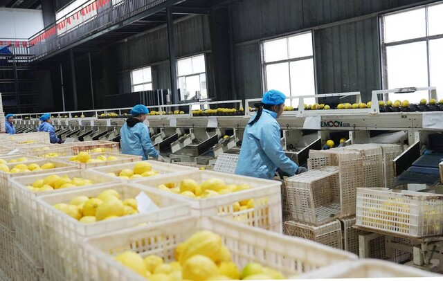 工人正在洗选高县柠檬。(陈小芳 摄)