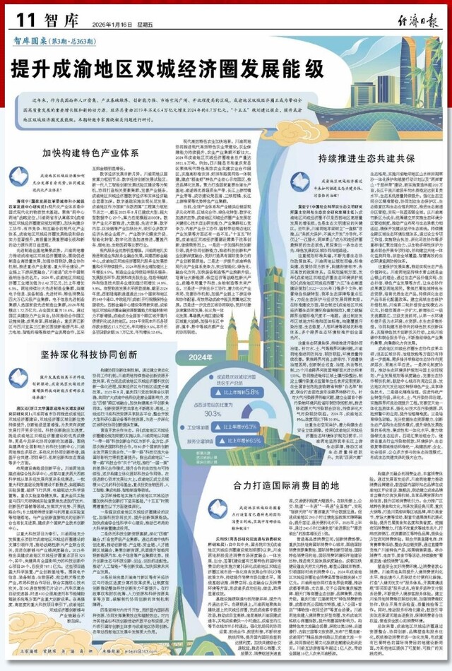 近年来,作为我国西部人口密集、产业基础雄厚、创新能力强、市场空间广阔、开放程度高的区域,成渝地区双城经济圈正成为带动全国高质量发展的重要增长极和新的动力源,经济总量由2019年不足6.4万亿元增至2024年的8.7万亿元。“十五五”规划建议提出,提升成渝地区双城经济圈发展能级。本期特邀专家围绕相关问题进行研讨。