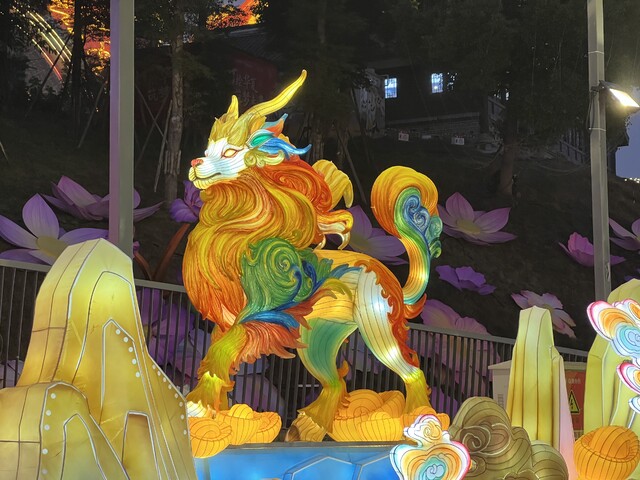 刘俊才介绍,青花瓷、药瓶并非首次出现在灯会,但这次他们对捆扎方法进行了测试、创新,使其表现力更强,神兽的形象更加栩栩如生,“由于青花瓷种类达到10余种,形状不规则,制作难度较大,需要非常有经验的彩灯工匠。”