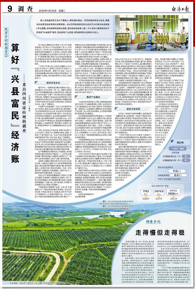 凉山州近年来发展变化很大。2025年底全州经济总量超200亿元的县(市)有3个,州府西昌市的经济总量突破800亿元,常年位于全国百强县之列。这些发展成就相较于东部沿海地区而言,虽然还存在不小的差距,但切切实实改变着凉山州群众的生活。与5年前相比,当地特色产业持续壮大,发展活力和后劲十足,山乡大地处处涌动蓬勃的希望。
