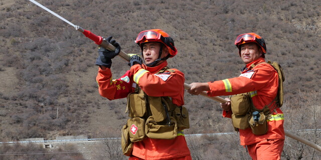 真正的考验是在火场上。2023年11月,黑水县瓦钵梁子乡突发山火,勒尕学带队紧急奔赴现场。大火借着风势向下猛蹿,直接威胁山下十余处民房。勒尕学迅速研判形势,果断下令建立水枪阵地。队员们肩扛水带冲向火线与房屋之间,他手持水枪站在最前方,持续压制火头。从午后到夜色笼罩,水柱一直没有中断,火势最终被控制在不到一公顷的范围内,所有房屋安然无恙。“当乡亲们紧握着我的手时,我深深感到这份工作的意义。”勒尕学说。