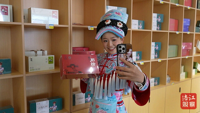 00后羌族姑娘陈新一站在镜子前换上艳丽的羌服,随后提着摄像设备走进村里一户羌家的腊肉炕房。灶台上,悬挂着一排排色泽红润的腊肉,阳光透过窗棂洒在腊肉上,透出诱人的光泽。她举起相机,一边调整角度,一边与正在熏肉的婆婆聊天。