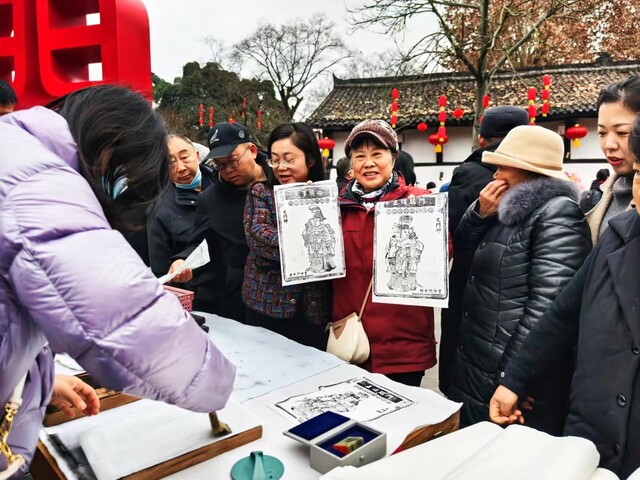 游客在阆中古城体验门神画木版拓印。阆中市委宣传部供图