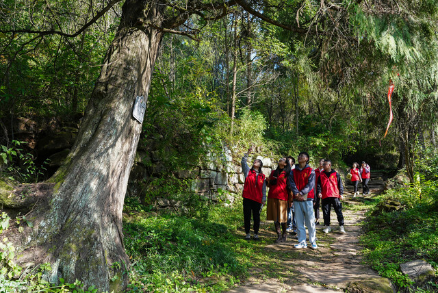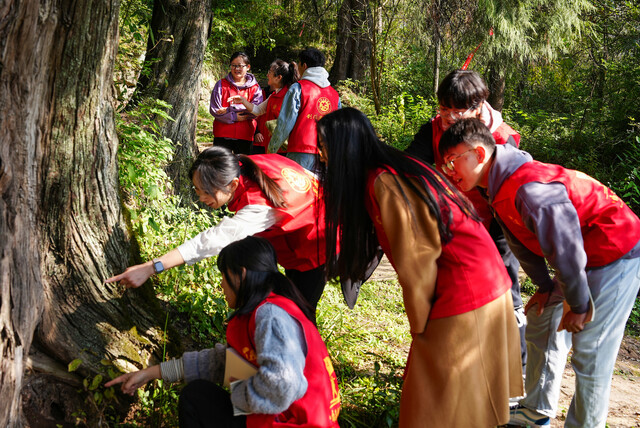 在剑阁翠云廊,7000多株古柏绵延三百里。林间,一群红马甲常年穿梭——他们是“大蜀道·蜀小兵”志愿服务队翠云廊古树名木保护志愿服务分队的志愿者。