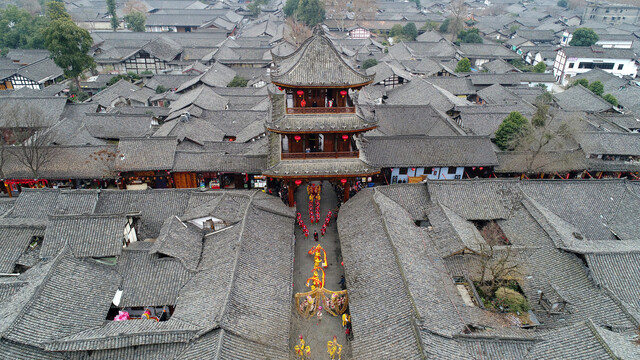 继承创新的阆中门神画、传统习俗“亮花鞋”等地方民俗特色鲜明、独具魅力;以中天楼为核心“层层展开、布若棋局”的百条街巷,古风古韵、穿越时空,成为承载文化遗产灵魂的城市地标;古城内的贡院,在一代又一代人的传承保护下,成为千年儒风和文明交响的文化地标……