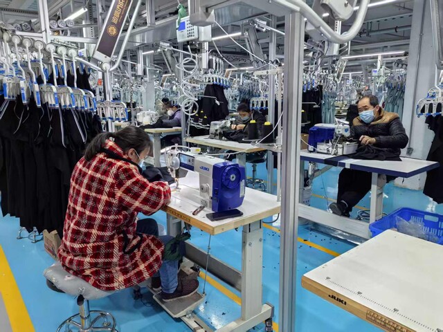 位于船山区永兴镇应龙桥村的遂宁市迪枫纺织科技有限公司生产车间里,一件件做工精良的服饰整齐码放在待发货区域,即将发往国内市场。