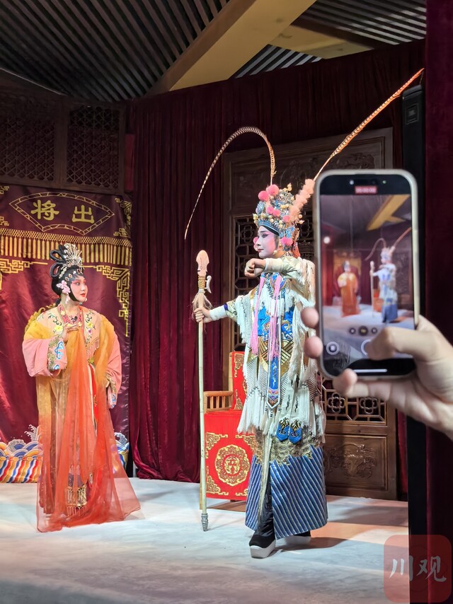 “考虑到游客的观赏习惯,我们将原本各40分钟的剧目‘裁弯取直’,压缩至约20分钟的精简版。”熊剑解释,这样的调整既保留了川剧的核心唱腔与剧情冲突,又能让观众在短时间内领略到变脸、吐火之外,川剧独有的故事魅力与声腔、表演美学。