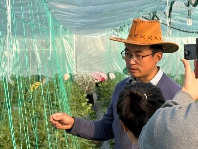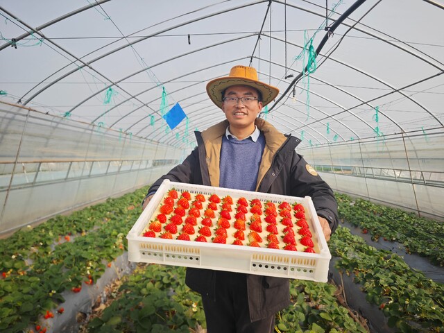 “这个品种就是巧克力草莓,大家在摘的时候捏到这个草莓最宽的地方,轻轻摇一下就脱了”,“这个是大球盖菇,它是用桑枝条、稻壳和玉米芯种出来的,吃起来脆滑爽口,我们拿回去煎、炒、炖、炸都可以。”阿贵热情地招呼着每一位前来采摘的游客。