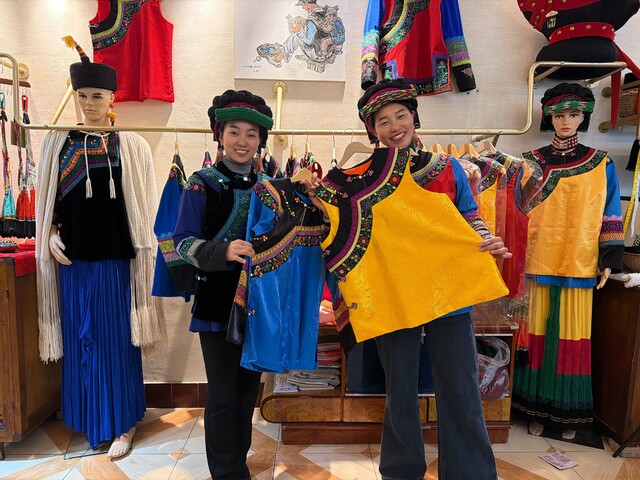 “有时候,我也是个彝族绣娘,不过我的姐妹们才是真正的高手。”她笑着展示身边的彝族服饰。纯手工刺绣针脚细密、图案精美,不仅承载着彝族传统文化的韵味,也寄托着她作为村妇联主席的初心:让姐妹们凭一双巧手,既守护民族传统,也挣得一份稳稳的收入。