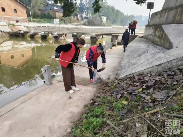 1月26日上午9点,薄雾初散。资阳市乐至县蟠龙镇黑堰塘村巡河员张茹兰提着编织袋、握着长钳,沿蟠龙湖岸缓缓行走。她目光扫过水面与草丛,熟练地夹起一个半掩的塑料瓶,装入袋中。随后,她举起手机,将清理后的湖岸拍照上传至“蟠龙湖管护”微信群。