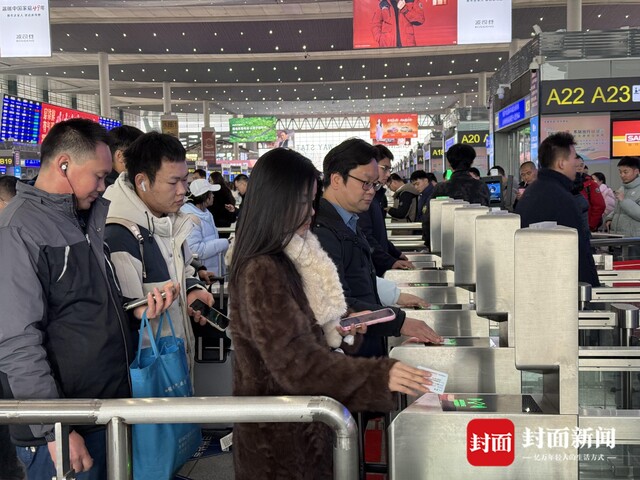 成都东站乘客正在检票
