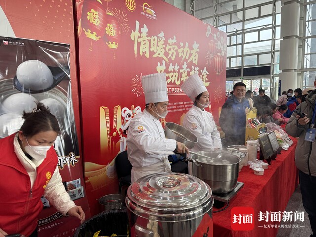 “汤圆好了,趁热吃哦。”成都东站汽车客运站内,工作人员正在向乘客提供免费的汤圆和姜枣茶。同时,还有写福字、画糖画、川剧变脸等特色活动吸引了众多旅客驻足参与、互动打卡......