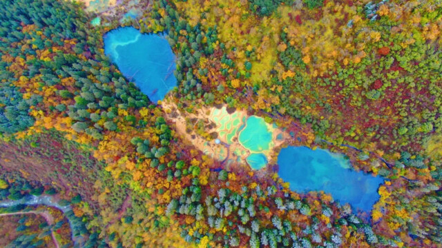 彩林与海子。九寨沟县委宣传部供图