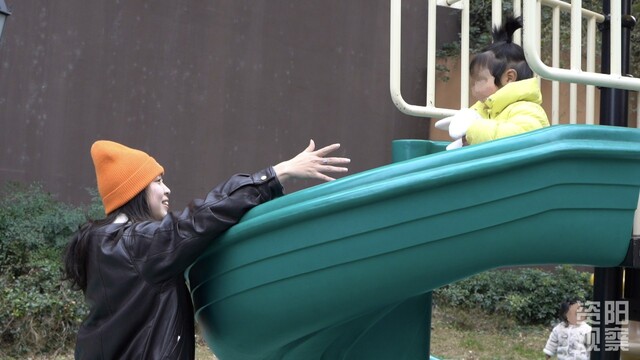 陈女士陪伴孩子玩滑梯