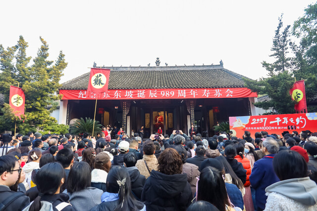 上午8时30分,悠扬古乐中,三苏祠南大门缓缓开启——“东坡989 同贺醉诗酒”纪念苏东坡诞辰989周年寿苏会拉开帷幕。这不仅是一场依循古礼的庄重纪念,一次跨越千年的风雅重逢,更是一幅传统与现代交融、敬仰与传承并进的生动画卷。来自四海的人们,带着对东坡的敬慕齐聚于此,在祠园的古韵今风中,共同见证文化薪火的传递,也迎接着新春的翩然而至。