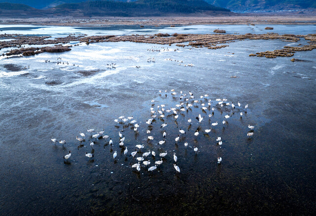 叶昌云豁然开朗,开始运用无人机,将镜头拉远:鸟儿栖息的整片湖泊、觅食的滩涂、藏身的森林……影像从此有了更完整的叙事,承载了更深厚的生态意义。