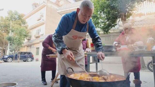 宋光志是小组里的“厨艺担当”,每年都负责几道硬菜。问起为什么坚持这么多年,他搓搓手:“就图个热闹。平时各忙各的,就这天,大家像又回到了老院子。”