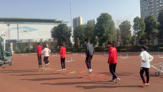 “再跳一次!膝盖发力要稳,跟弹簧似的弹出去!”
