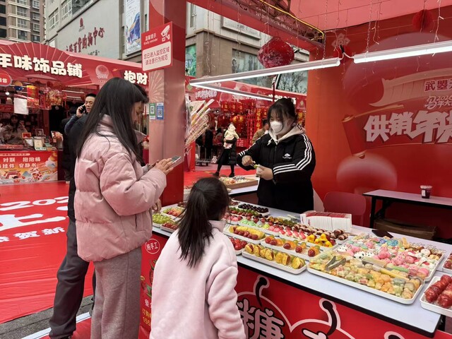 “以前过年买年货要跑好几个地方,现在天街这个大集一站式全搞定,热闹又方便!”在武曌天街置办年货的市民刘女士指着手里刚买的本地香肠和干货说道。从外地回家过年的张先生也带着家人边逛边感叹:“街区很有唐朝风貌,年味足,活动多,小孩玩得开心,我们消费也开心。”
