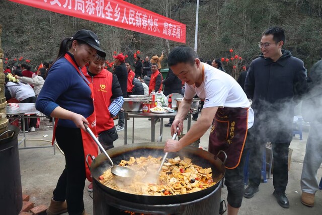 “谢谢乡上和村上的这份用心,让我们这些常年在外的人,能第一时间尝到这么多家乡味道!”两天前才从深圳返乡的村民张金海告诉记者,他在深圳工作快30年了,这是第二次特意赶回村里吃小年团圆饭,感觉很暖心也很亲切。