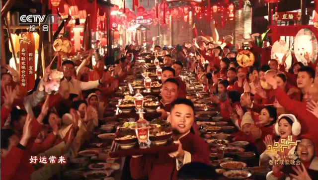 在节目《立上游》中,李子柒化身“知客司”喊出那一声“请春酒咯”。源于宜宾高县庆岭镇的“川南请春酒”是省级非物质文化遗产代表性项目。春晚舞台上那一张张春酒桌仿佛是大家心照不宣的“社交密码”,盛满中国人热情好客的团圆情怀。