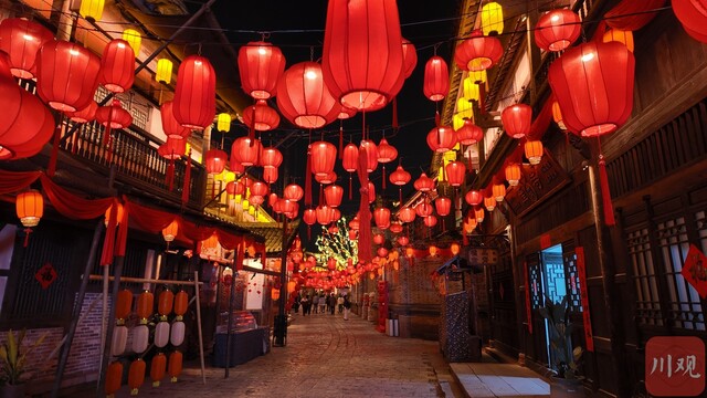 马年新春,总台春晚宜宾分会场年味拉满。2月15日晚,翠屏区冠英古街彩灯错落,游人拍照打卡,烟火气十足。501白酒文化圣地年味更浓,元明活态古窖池旁红灯映照着酒坊,酒香与年味交织相融,成为酒都新春热门打卡地。中山街上,跑马灯流光轮转,行人驻足欢笑,老城区热闹非凡。