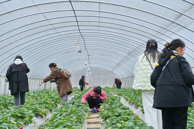 在耕读山河研学基地,五彩斑斓的羽衣甘蓝在田野间整齐排列,游客们穿梭其中,或拍照打卡,或体验采摘。宜宾职业技术学院相关负责人介绍,这个占地260余亩的基地是高县政府与学校共建的重点农业示范项目,已成功种植羽衣甘蓝、黄心坞等30余种作物。