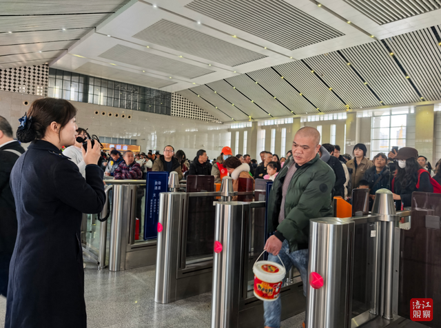 “我们的工作就是这样,紧盯进站口、检票口、站台各个点位,哪里客流大,就立刻赶往哪里引导进出、疏散人群、维护秩序,让旅客出行安心、顺畅。”李璐君说,春运期间,这样的往返奔波、重复引导的频次成倍增加。