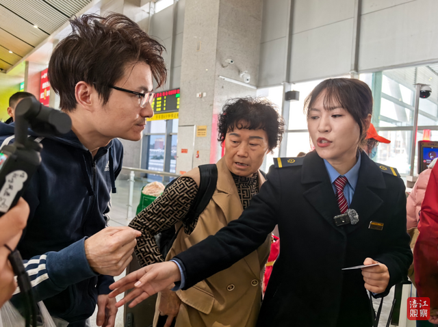 “重点旅客邓先生已抵达进站口会合点,请轮椅协助。”对讲机里,进站口同事的声音急促传来。眼看时间紧迫,自动扶梯上人潮拥挤,李璐君与同事片刻不停,快步从站台一路小跑赶往进站口,全程护送邓先生乘坐直达电梯进入候车室,协助完成检票手续,一路将他平安护送至前往上海的列车车厢落座后,才转身匆匆离去。
