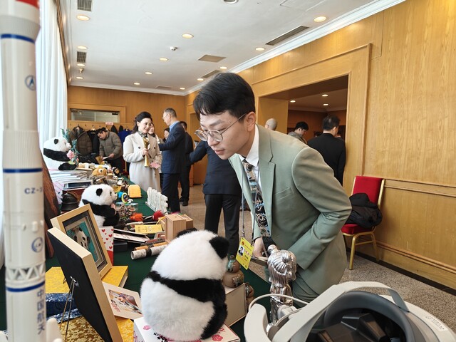 当熊猫“花花”遇上火箭,顶流哪吒遇上AI蜀绣、永丰村的大米遇上三星堆神鸟……2026年全国两会四川团开放日的展台氛围感已拉满,前来采访的记者们纷纷“赶着出片”。