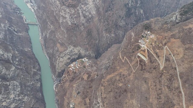 这是1月29日拍摄的地处大渡河大峡谷的四川省汉源县永利彝族乡古路村(无人机照片)。新华社记者 王曦 摄