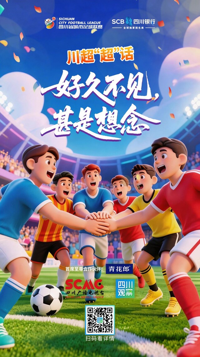 好久不见,甚是想念。别误会,我们说的不是想谁,而是休赛了3个多月的2025/2026四川银行四川省城市足球联赛。终于,下个周末,“川超”决赛阶段将重燃战火,9支球队蓄势待发,我们又可以听到那一声声属于四川人的“雄起”声了。