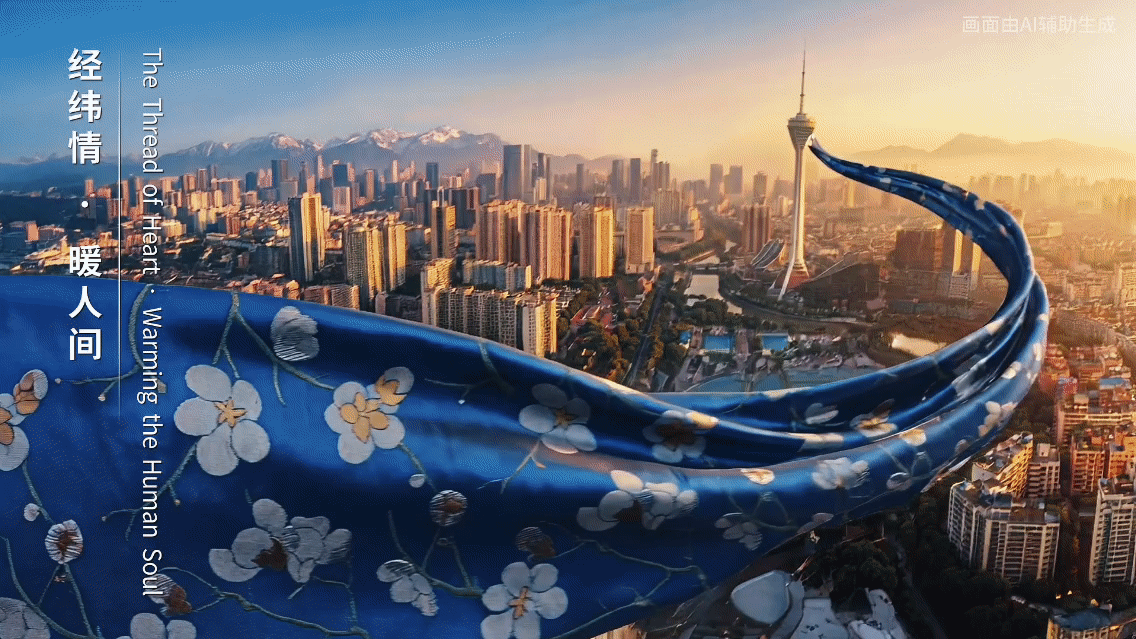 《绘锦绣 立上游》紧扣习近平总书记对四川工作系列重要指示精神,以及中共四川省委十二届七次全会、十二届八次全会部署,将蜀锦作为贯穿全片的视觉符号,借AIGC生成等数字化手段做创意表达。全片以“经纬脉·承古韵”“经纬图·展造化”“经纬情·暖人间”“经纬志·通未来”四个篇章,展现“锦绣天府·安逸四川”的文明脉动、自然风华、人文风情、发展壮志。