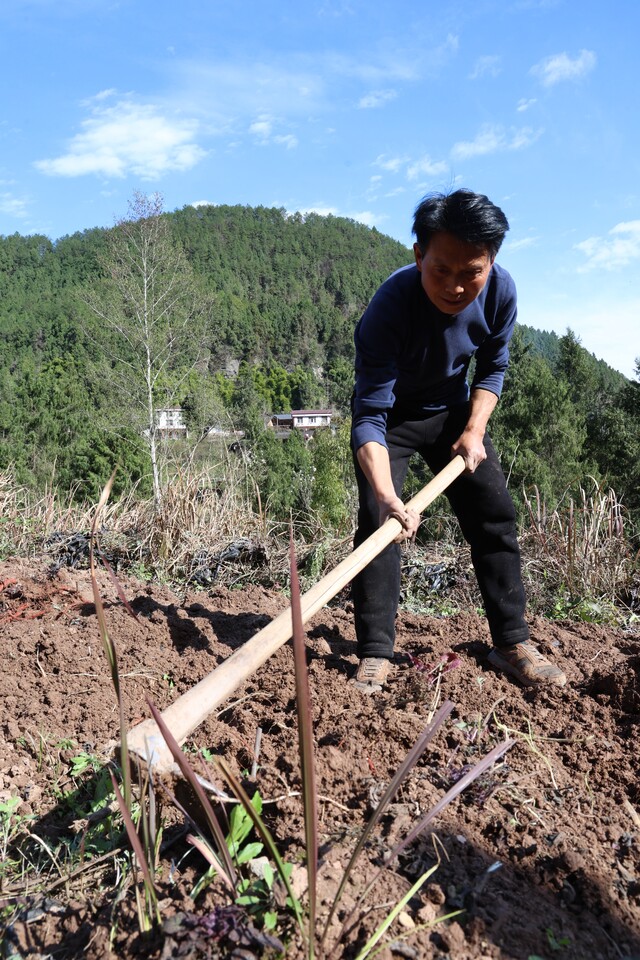 丹参好养易活,栽种一年即可采收,兼具活血化瘀、通经止痛等功效,对心血管健康、心烦失眠也有辅助疗效,是市场上的“香饽饽”。“只要有苗,底下必生根!”丹参园另一头,白永恒挥着锄头采挖去年的丹参,一锄头下去,饱满的根须便显露出来。