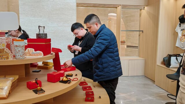 展厅外,文创空间同样热闹非凡。游客们或驻足端详展架上的精美文创,或三五成群讨论着各自心仪的纪念品,将这份来自三百年前的记忆小心收进行囊。“我给孩子挑了一枚‘永昌大元帅’的复刻金印,还有这本纹样手账本。”一位年轻妈妈王梵抱着刚选购的商品,笑意盈盈。