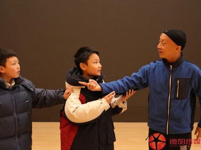 王松手把手教孩子们汉剧。 德阳传媒记者 雷媛 摄
