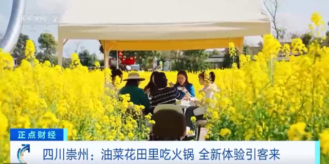 随着气温回升,四川崇州的10万亩油菜花,进入了最佳观赏期,而一种“美食+美景”全新的体验方式,正在当地流行。