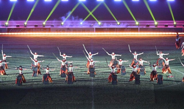 随后的《旗开得胜》马术秀,六名川汉子身跨骏马、背负旗帜绕场一周,为“川超”带来了“马到成功”的祝福;短片《马力全开》浓缩了“川超”从萌芽到壮大的历程,展现了四川足球人敢闯敢拼的精气神;《四海同歌》则以悠扬旋律串联起巴蜀大地的山河与人文,传递出“一家人、一条心”的巴蜀情怀。