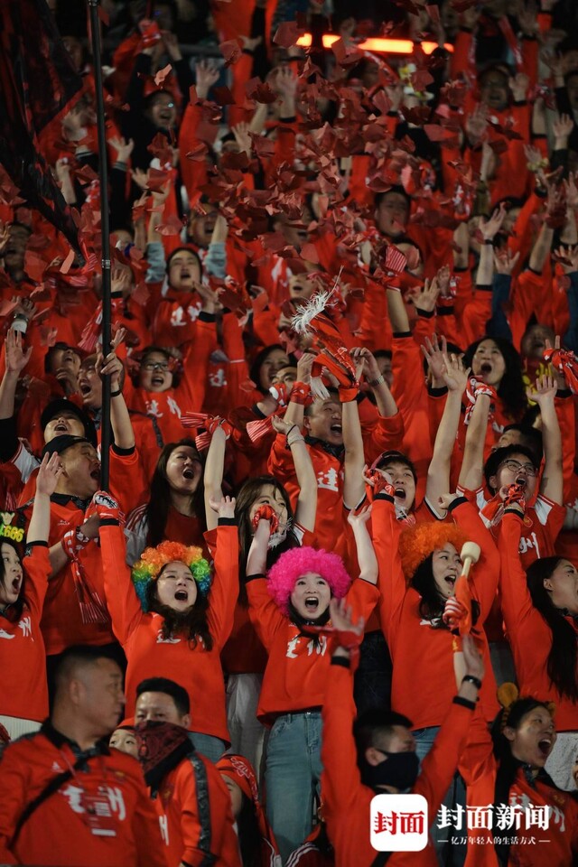 球迷掀起人浪助威呐喊。