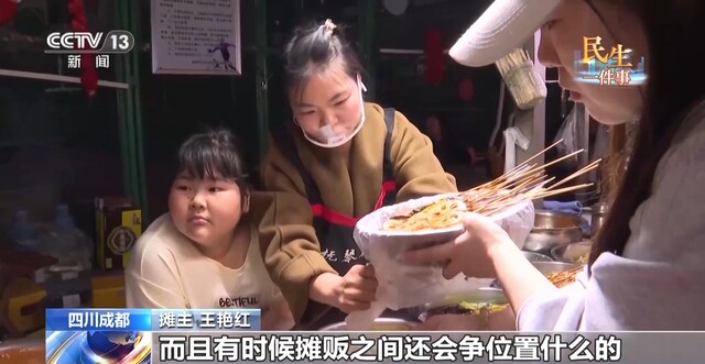 摊主 王艳红:现在都是夜市统一管理了,每个人都在自己的摊位上、自己规定的区域里面摆摊,平时的卫生也有人打扫,很干净。