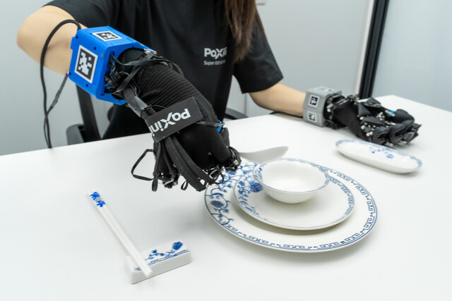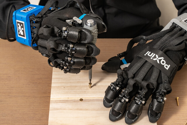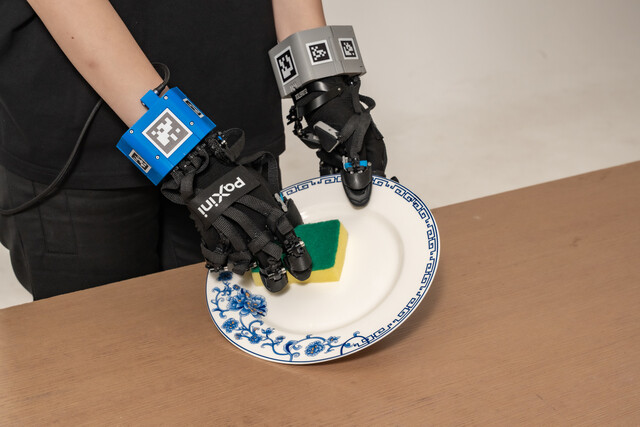 真人正在佩戴PMEC触觉采集手套采集数据。