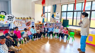 学前学普将语言的种子播撒进更多孩子心田。邓顺龙 摄
