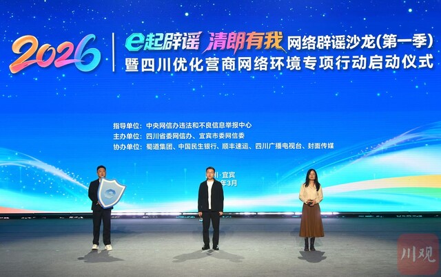 3月26日,“e起辟谣 清朗有我”2026年网络辟谣沙龙(第一季)暨“四川优化营商网络环境”专项行动启动仪式在四川宜宾举行,主题活动用一个个真实的案例讲述,撕开了网络谣言的画皮。现场,媒体从业者、企业代表、专家学者等多方力量,围绕网络辟谣主题展开对话,凝聚了全社会共同守护清朗网络空间的共识。