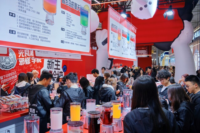 来自四川的光良酒业则推出“光良酒白酒‘邪修’学院”。在现场,超1000名身着“魔法袍”的大学生涌入展位,他们以基酒搭配可乐、雪碧、果汁等饮料以及装饰配料,调制出一杯杯色彩斑斓的作品,并不断拍照、拍视频,第一时间在社交媒体上发布“邪修”成果。光良酒业创新发展部负责人杨洪曼表示:“用一种更实际的方式去推动年轻人和中国白酒之间建立新的连接,我们希望让年轻人从白酒行业的旁观者变成参与者甚至共创者。”